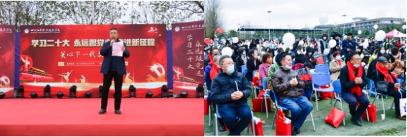 为深入学习宣传贯彻党的二十大精神,凝聚思想共识,激发奋进力量,由学校主办,校团委、校离退处承办的“学习二十大,永远跟党走,奋进新征程”关心下一代文艺汇演活动于11月30日下午在羊马校区运动场举行。全体校领导、团委、离退处等部门负责人出席此次活动,二十余位老同志及学生代表参加了本次活动。