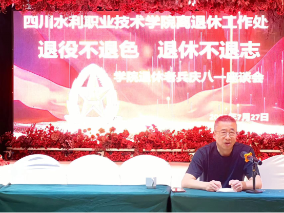 为庆祝中国人民解放军建军96周年,扎实做好节日期间退役军人慰问工作,传递学校对老兵的关心和关爱,7月27日,在都江堰市飞龙酒楼召开了“2023年度退休退转军人座谈会”,学校副书记于建华、学校离退休工作处工作人员以及20余名退休退转军人参加此次座谈会。