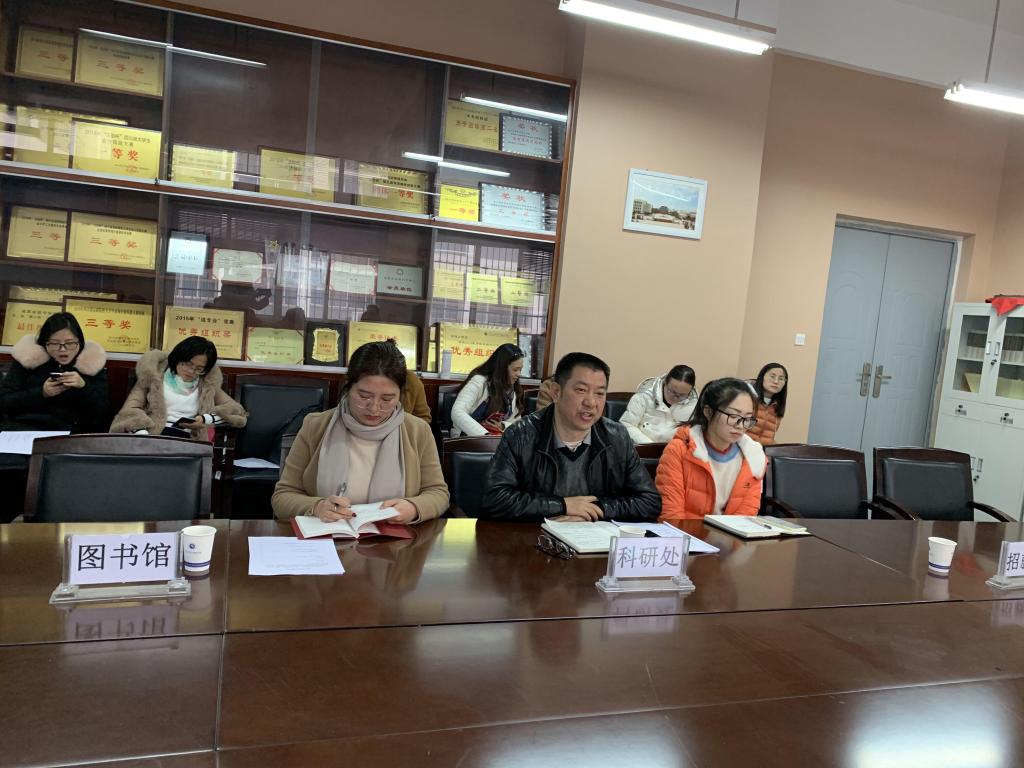 12月25日下午,为进一步帮助教师掌握科研情况和提高科研水平,马克思主义学院在2号实训楼2203会议室召开科研交流工作会议。招生就业处处长郭毅、科研处处长杨绍平和图书馆馆长谢祥林莅临指导部门工作。会议分为职能部门科研情况介绍和部门刘鸿博副教授、王雪燕副教授科研经验分享两个议程。部门全体教师参加,会议由马克思主义学院负责人何雄主持。