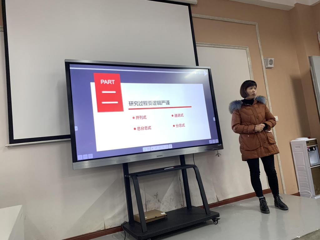 在部门优秀教师科研经验分享环节,部门老师美国访问学者刘鸿博副教授和王雪燕副教授结合自身教学和科研工作经历在科研选题方向、项目申报、文献查找、研究方法、论文投稿过程和论文发表方法方面做了细致介绍与经验分享。
