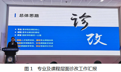 汇报会上,教务处副处长双学珍代表教务处,从诊改基础、诊改设计、诊改推进情况、诊改成效和下一步工作方向五个方面展开汇报向专家组汇报了专业及课程层面的诊断与改进工作。她指出,专业是学院发展的核心,课程是专业建设的基础,课堂是教学的最后一公里,我院始终把专业、课程、课堂作为诊改工作的重心,把明确人才培养目标、重构专业课程体系、完善教学保障条件、补充课程教学资源、改进课堂教学手段、优化考核评价方式贯穿于专业和课程诊改工作的始终。