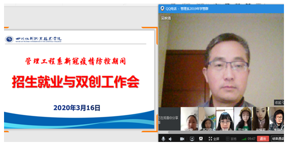 为进一步做好疫情防控期间招生就业与双创工作,管理工程系于2020年3月16日召开新冠疫情防控期间招生就业与双创工作视频会议。管理工程系党政负责人以及全体专、兼职辅导员参加本次会议。