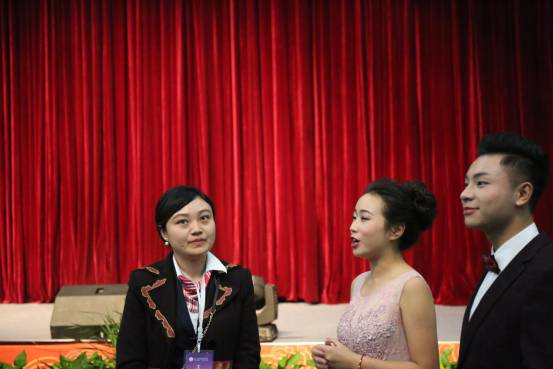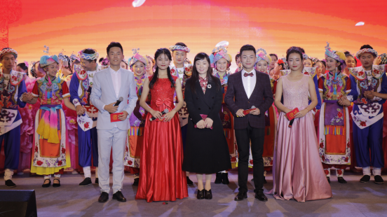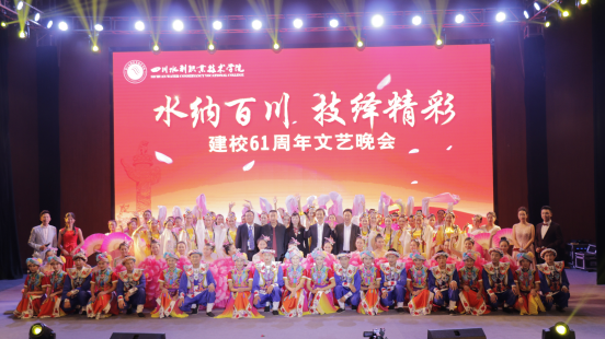 演出完成后,学院党政领导上台慰问所有演员,并和他们合影留念。党委书记刘锐还专门和主持人一一握手,表扬他们的应变能力和深深爱校情怀。