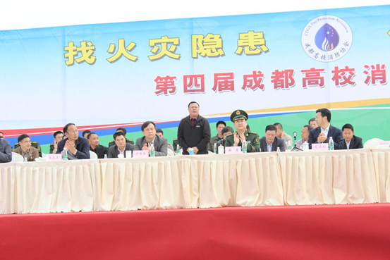 下午两点,出席本次活动的成都市副市长苟正礼以及在蓉的30多所高校的校领导和我院姚志富副院长陆续登上主席台。随后苟正礼副市长做了重要讲话,他指出,市委、市政府一直以来对消防问题高度重视,不仅加大对消防基础设施的建设,同时还加强对市民安全防火意识的提高,尤其是全市消防公安与时俱进、不断发展,为确保全市人民生命财产安全、生产生活安全,作出了突出贡献。希望大家在活动中普及消防安全知识,积极提升自身消防技能,帮助群众提升自防自救能力。