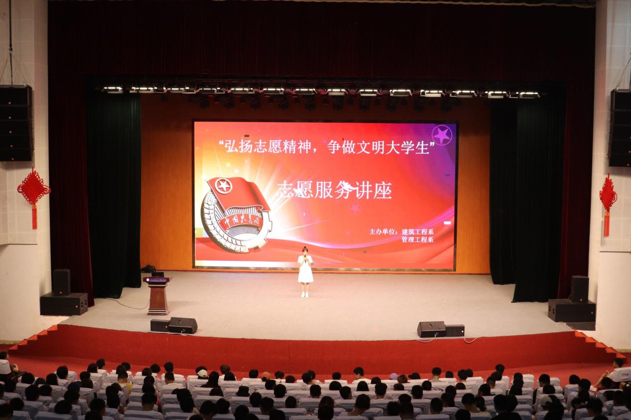 为了让党史学习教育与志愿服务实践有机结合,引导广大在校学生学党史、感党恩,永远跟党走,全心全意为人民服务,主动加入到志愿服务中来,建筑工程系与管理工程系于2021年6月4日在羊马校区礼堂联合举办了志愿服务讲座,主讲嘉宾为崇州市志愿服务联合会党支部书记兼理事长卞永强。建筑工程系团总支书记张浩然、管理工程系团总支书记关晓轲以及来自全校各系的大一学生代表参加了此次讲座。