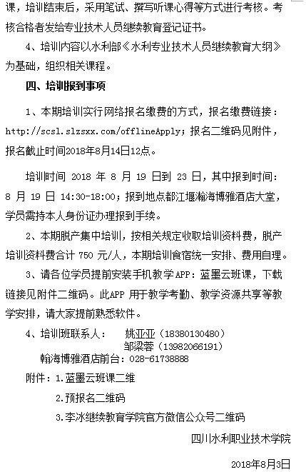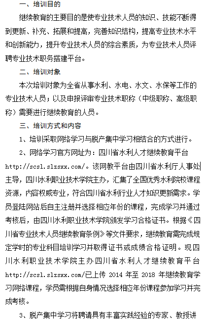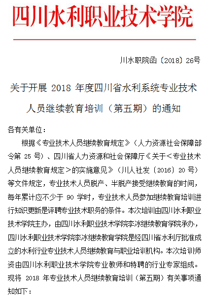 关于开展 2018 年度四川省水利系统专业技术人员继续教育培训(第五期)的通知