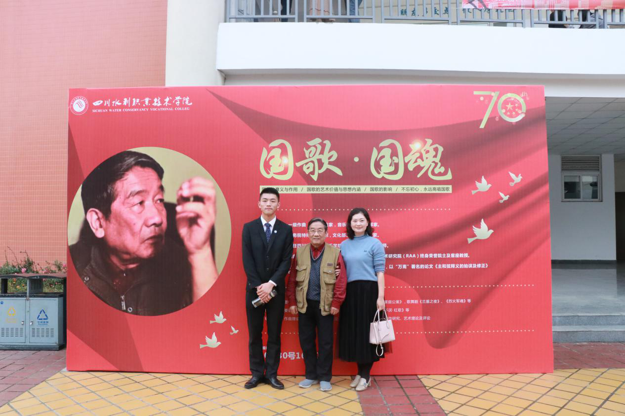 国歌是一个国家民族精神的载体,是代表国家和人民意志的乐曲,是民族凝聚力的重要体现。2019年10月30日下午,四川水利职业技术学院在羊马校区礼堂开展了“国歌•国魂”的爱国主义专题讲座。此次讲座特邀今年已78岁高龄的国家一级作曲家、国务院特殊津贴享受者、四川师范大学音乐学院研究生导师、全国高校音乐教育学会副理事长及创作委员会主任韩万斋教授主讲。学院1200余名师生参加此次讲座。