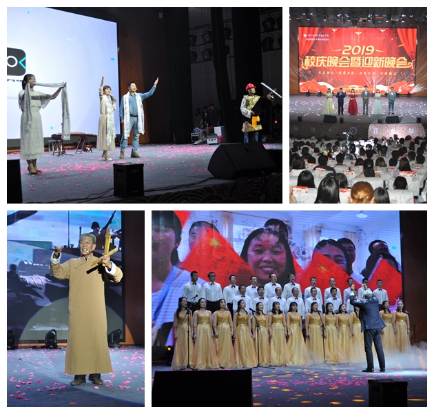 离退处老干部用充满四川特色的金钱板敲出《地覆天翻七十年》,将祖国70年来的成就一一讲述,劝告当今青年要不忘前辈付出,努力拼搏、再创辉煌。工会老师带来的合唱表演《我和我的祖国》用动听的歌声表达对祖国母亲的爱意,深情献礼祖国七十华诞。工会老师用情景剧《山水缘》讲述了工匠精神的传承,展现出学院以培养优秀人才不断努力。舞蹈 《adios》《劣等上等》《HEY告白气球》《kill this love》《Not yours》《This Girl》等通过多种舞姿展示了同学们的青春活力,彰显校园朝气。