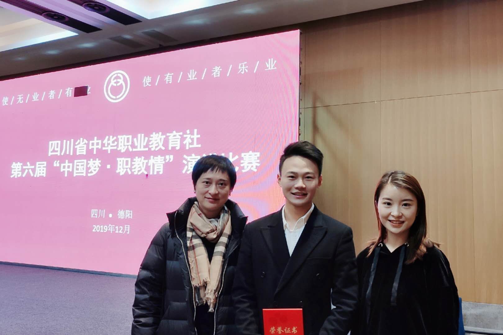 2019年12月6日,四川省第六届“中国梦.职教情”演讲比赛在德阳举行,来自全省32所中、高职院校参赛,我院建筑工程系李立基同学获在高职组15名选手中名列前茅荣获二等奖,宣传统战部部长刘悦、干事刘斯琴带队指导参赛。
