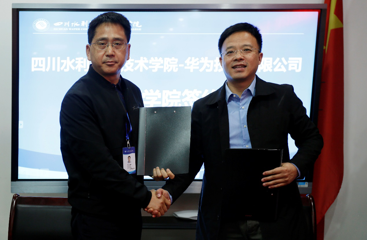 在校企双方参会人员的见证下,刘建明院长代表学院别与华为公司进行了校企合作签署第一项《四川水利职业技学院-华为技术有限公司双方合作协议》以及《四川水利职业技术学院-华为ICT学院合作协议》