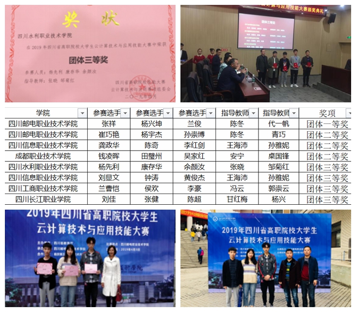 4月3日,由四川省教育厅主办的《四川省高职院校大学生云计算技术与应用技能大赛》在四川邮电职业技术学院隆重举行。学院信息工程系北大青鸟共建专业的杨先利、康存华和余颜汝同学在比赛中发扬团结拼搏、积极进取的精神,最终在四川省参赛的20多只支队伍中脱颖而出,荣获省赛第五名、团体三等奖。