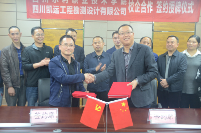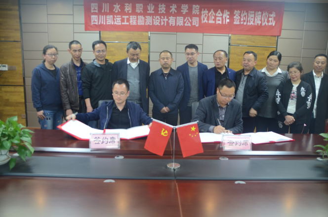 为更深入地进行校企合作、校企共建达到校企共赢的目的,进一步深化校企合作的广度和深度,积极推行校企合作、工学结合的人才培养模式,增强专业建设水平和学生实践能力,服务地方经济,经过多次调研、讨论,2019年4月11日,四川水利职业技术学院与四川凯运工程勘测设计有限公司校企合作签约仪式顺利举行。