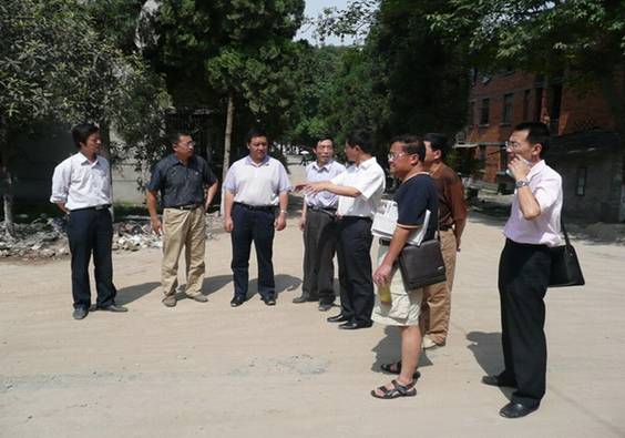 图为省教育厅涂厅长王副厅长在学院领导的陪同下实地查看灾情
