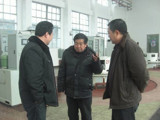 电厂余建军厂长向副院长姚志富、工会主席兼人事处处长、安办主任王宾介绍生产情况