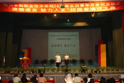 为丰富校园文化生活,引领学院广大青年学生说好普通话,提倡广大青年文明用语,5月31日晚7点,在学院礼堂举行了2010年五四青年月系列活动之“美丽语言、魅力人文”校园普通话大赛。出席活动的嘉宾有学院党委副书记、纪委书记王建华,学院团委副书记杨波静,以及各系部学生管理干事、辅导员。学院学生党支部副书记万玲老师,学院人事处副处长詹晓梅老师,学院党办韩苓老师和水利工程系谭秋颖老师担任了此次比赛评委。经过各系部初赛、推荐的11名选手参加了比赛。