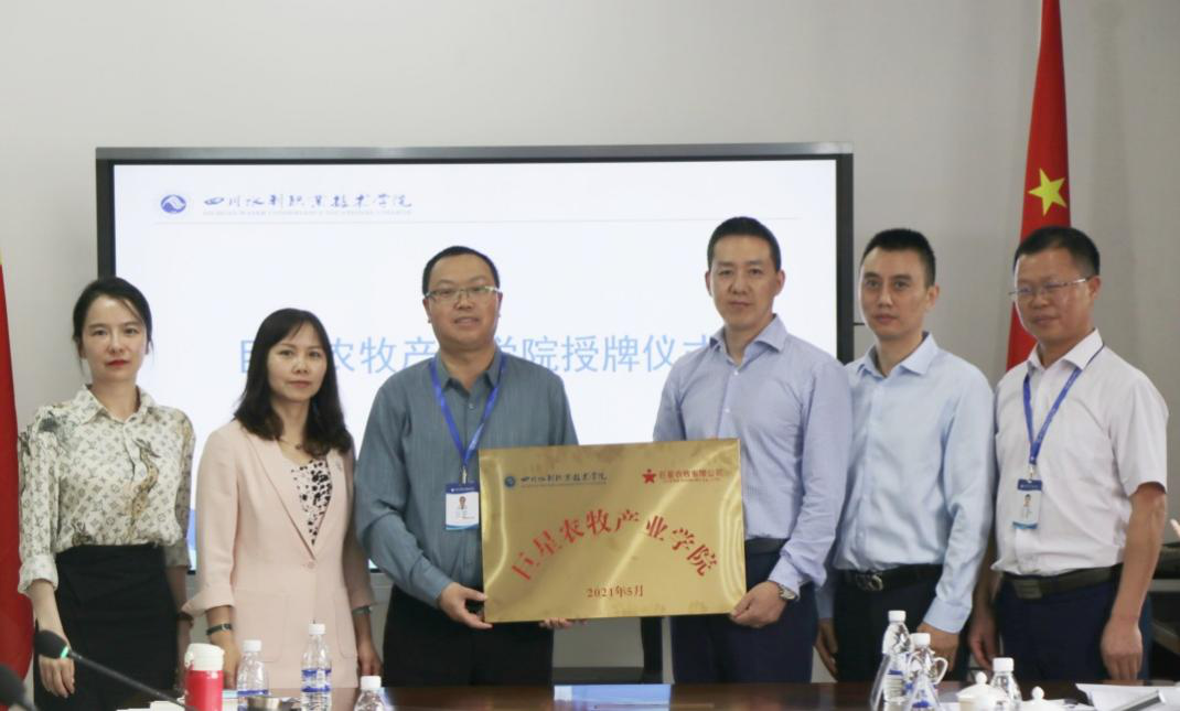会议由生物工程系负责同志主持。本次会议分为两个阶段。第一阶段,首先由学校副校长张智涌致欢迎词,对各位企业参会嘉宾的到来表示热烈的欢迎,并从校区建设、组织机构、学校未来的发展规划等方面向与会嘉宾做了详细介绍,最后特别强调加强产教融合、校企合作对学校建设发展的重要性。生物工程系从系部情况介绍、师资力量、教学与实践等方面做了简要汇报,让企业嘉宾及学校参会领导对生物工程系有了一个较为全面的认知和了解。最后,巨星农牧股份有限公司总经理唐春祥与学校副校长张智涌共同举行了巨星农牧产业学院授牌仪式。