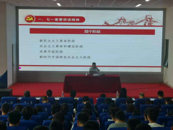 2021年9月17日,学校党委副书记王宾同志给电力工程系党员同志及其所联系班级学生讲授了“习近平总书记在庆祝建党100周年大会上重要讲话精神”专题党课。本次党课的主题是:赓续百年辉煌,担当育人使命。讲座的内容分为“七一”重要讲话精神,“七一”重要讲话的重大意义和体会,新时期对我校全体干部师生的要求。
