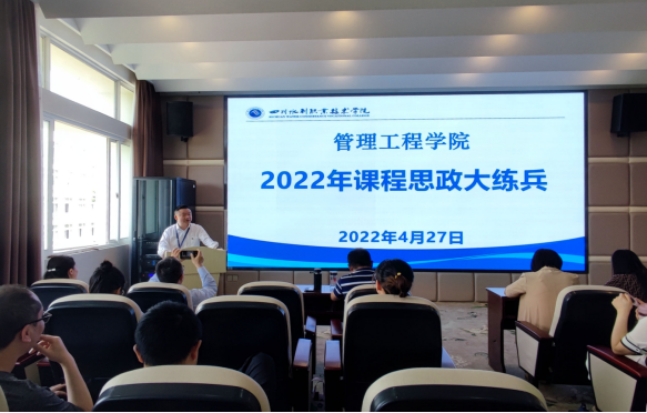 为全面落实“三全育人”工作,以作风整顿见实效,扎实推进样板支部建设,全面提升教师课程思政教学能力。2022年4月27日,管理工程学院在第二实训楼2308一体化实训室举行2022年“课程思政大练兵”活动启动仪式暨初赛。学校教务处处长杨中瑞出席指导工作。水利工程学院副院长张磊副教授、马克思主义学院王雪燕副教授、信息工程学院阳鑫副教授受邀担任评委。管理工程学院党总支书记吴映清主持活动,全体老师参加观摩。