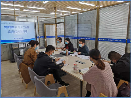 4月8日下午,校党委宣传统战部部长刘悦等来学生工作部调研学生意识形态工作开展情况。学生工作部部长李春成、副部长蒲咏秋及相关岗位同志参加了会议。
