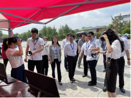 今天虽然烈日高照,但依然不能减少学院师生对新知识的吸取、对新技能的获取。在李冰广场,资环学院布置了三个展台,分别是外来物种入侵科普、地质灾害避险训练VR虚拟设备、1+X污水处理仿真训练考核系统。学校领导来到资环学院展台与师生们进行交流,并亲自体验了VR虚拟现实设备,邹渝院长在现场亲自欢迎前来观摩的学校领导,并讲解和演示如何使用仿真模拟教学设备及VR虚拟现实设备,环境专业的学生也向前来了解外来物种的师生科普白花鬼针草、马樱丹、商陆等外来植物。