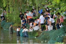 生物工程学院以莲花湖捕鱼现场教学拉开职业教育活动周序幕,捕鱼现场吸引了众多师生驻足观看,场面十分热闹。
