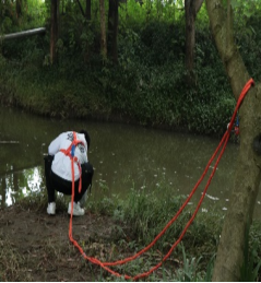 22人组成的志愿服务队在当地社区负责人的带领下参观熟悉了桤木河湿地公园的配套设施和水文环境。志愿队沿着河岸进行了5.3公里的巡河检河,并向沿岸居民科普河长制政策、宣传节水护水知识。与此同时,在绿道使用钳子作为辅助工具清理岸坡垃圾,使用折叠网打捞流域漂浮物,并对打捞垃圾进行分类处理。在巡河过程中,志愿队队员对违规游钓进行劝导,成功劝退两名在沿岸违规垂钓的居民。随后,志愿队在不同的三个河段提取了水样标本,后期将通过检测对河段健康状况做出基本诊断。