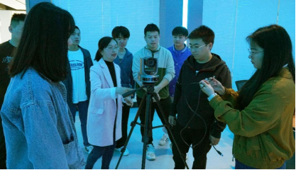 同学们用心倾听专业教师讲解直播摄像系统的操作步骤