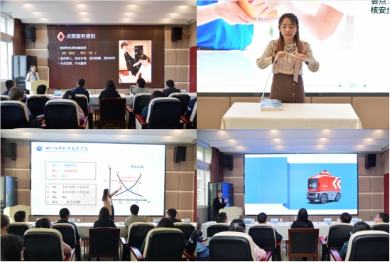 管理工程学院22名专业老师经过初赛环节课程思政教学展示,10人进入决赛。决赛现场,老师们以8分钟的完整教学片断,展示课程思政教学成果。财务专业张敏老师紧跟社会现实,以《资金的时间价值——复利终值的计算》为题,通过对专业知识讲解,引导青年大学生要合理消费,切勿陷入“校园贷”的骗局;酒店专业祁玲老师讲授《中餐服务与管理——点菜服务》,融入中华民族优秀文化和道德传统——勤俭节约思政元素,从点菜的习惯、人员特征到菜品背后所蕴含的中华文化,倡导师生光盘行动;物流专业洪士雯老师讲授《十字打包法》,现场示范,突出节约资源,理实一体展示工匠精神等等。