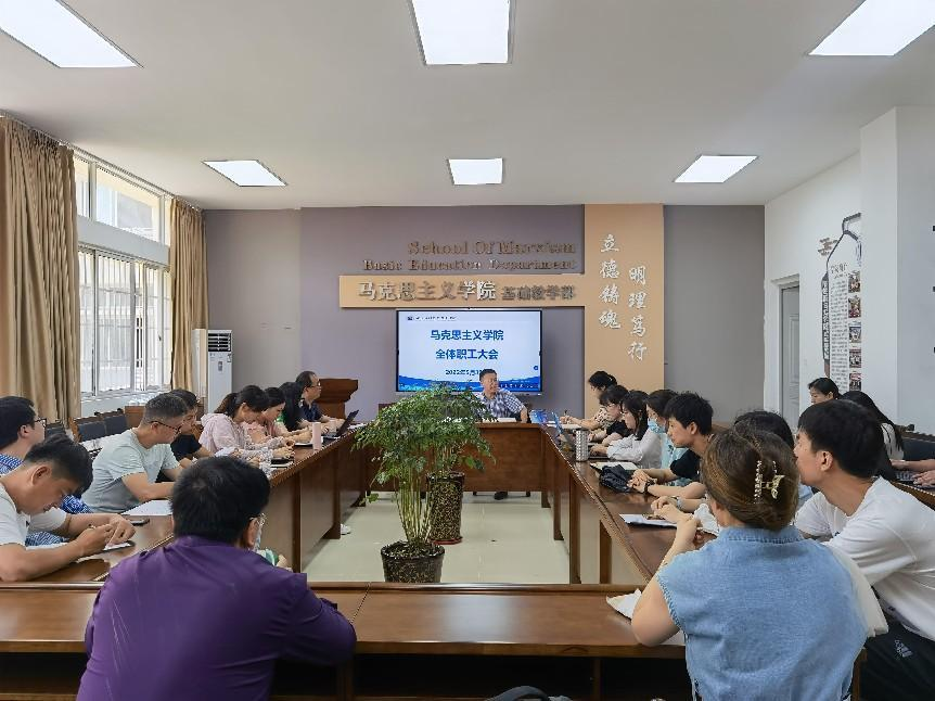 2022年5月30日下午,马克思主义学院在会议室召开了本学期第二次全体职工大会,院长王卓主持会议,全体教师通过线下和线上两种方式参加会议。