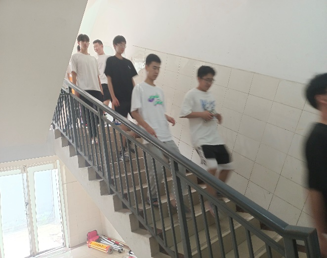 5月31日下午13:00点整,当第一声警报吹响时,同学们迅速找到附近避震地点进行紧急避险。第二声警报吹响时,同学们按照疏散要求和路线进行有序撤离,并前往空旷地带同学们按照规定路线在规定时间内迅速进入临时避险区域,随后各班班长组织同学们按班级集合并清点人数,并向现场负责同学汇报情况。