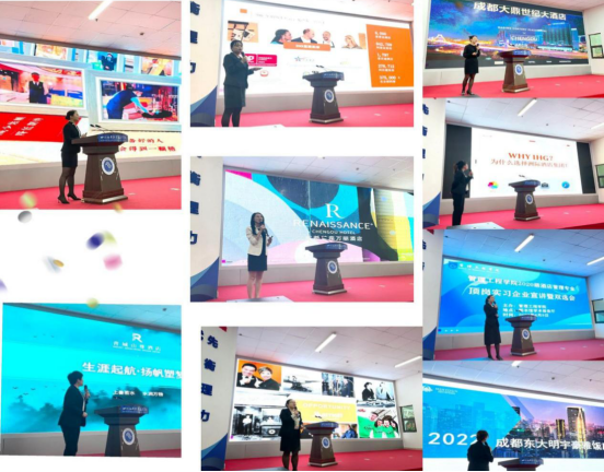 管理学院党总支书记吴映清介绍2020级酒店专业学生岗位实习有关安排并提示企业宣讲注意事项。随后,9家合作酒店依次宣讲。宣讲中,各酒店对品牌文化、公司情况作简要介绍,以图片、视频等形式全方位展示酒店风采,详细介绍可提供的实习生岗位、福利待遇及实习生培养计划等。