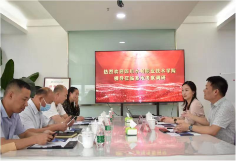 成都市新经济(数字经济)人才发展平台副秘书长陆小虎、张丽君对宋洁、王剑平一行的到来表示热烈欢迎,并亲自为到访人员介绍公司情况,发展方向及目前与四川水利职业技术学院共建校企合作情况。