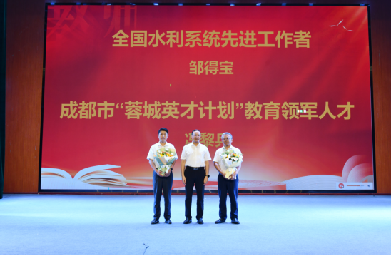 金秋九月颂师恩,水利薪火代代传。9月10日下午,学院在羊马校区大礼堂隆重召开第41个教师节庆祝大会,大会的主题是“以教育家精神铸魂强师,谱写教育强国建设华章”。省水利厅党组成员、副厅长谭小平,省水利厅人事处处长牟春,学校党政领导班子成员,全体教职工齐聚一堂,隆重庆祝这一重要节日。大会由党委副书记、校长华国春主持。