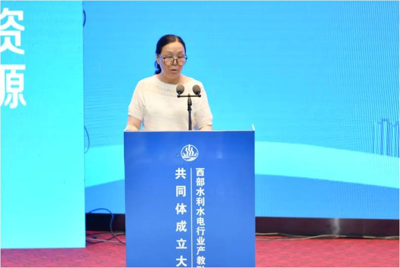 四川省教育厅职业教育处副处长陈欢表达了对西部水利水电行业产教融合共同体成立的祝贺与支持。她强调,要进一步加强沟通交流,建立健全工作运行机制,积极推动职业教育链与产业行业链有效衔接,培养更多高素质技术技能人才,为职业教育高质量发展贡献力量。
