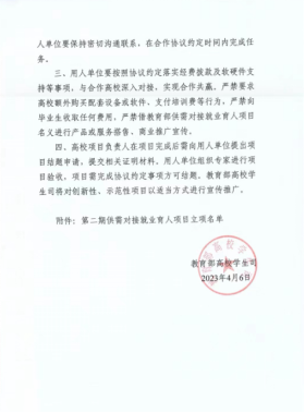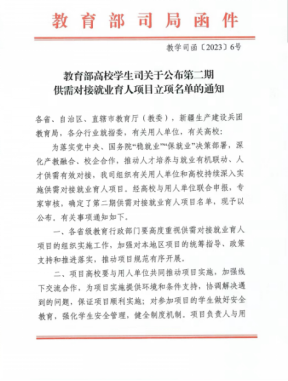供需对接就业育人项目是教育部贯彻落实党中央、国务院“稳就业”“保就业”决策部署的举措之一,旨在深化高等教育改革,推动就业与培养有机联动、人才供需有效对接。用人单位提供项目专项经费和资源支持,通过与高校开展定向人才培养、就业实习等合作,帮助用人单位培养和招聘更多创新型、复合型和应用型人才。
