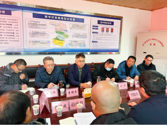 揭牌仪式后,刘建明一行前往王家镇新华村调研指导驻村帮扶工作,并就设立“助学帮困”基金、“星级文明户”评选、河道渠系管护、特殊困难人群服务“公益性岗位”设置和“监测户”结对帮扶等事项与镇、村主要负责人座谈。