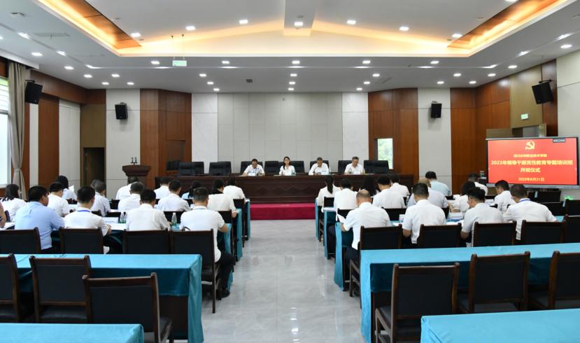 8月21日,四川水利职业技术学院2023年领导干部党性教育专题培训班开班仪式在学校羊马校区行政楼C区303会议室举行。党委书记陆健作动员讲话,党委副书记于建华主持开班仪式,副校长张智涌、纪委书记李明忠出席开班仪式。学校各部门党政负责人共计40余人参加开班仪式和培训。