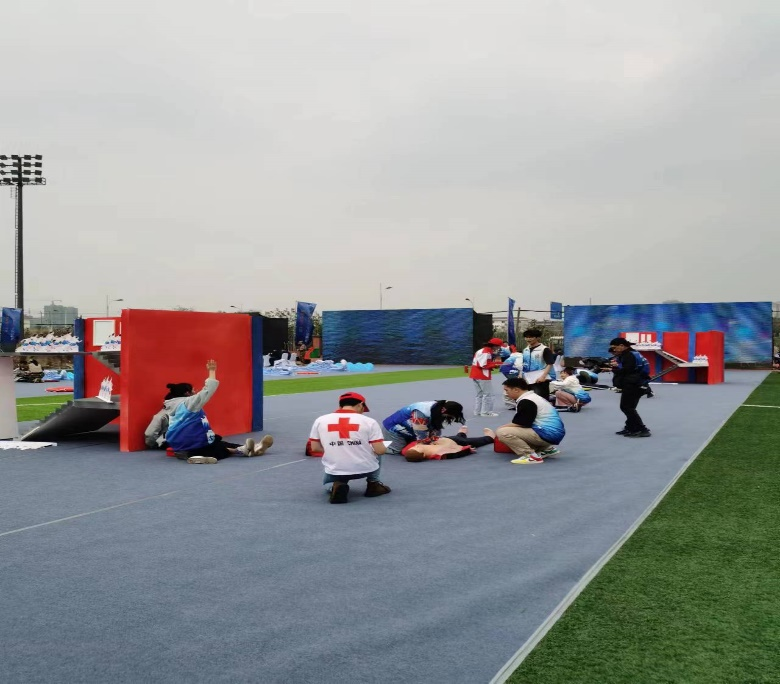 此次活动由院前急救实操、基础消防器材使用、防灾减灾课题宣讲三个部分组成。在6个LED屏模拟的交通事故、火灾、地震、校园踩踏、溺水及山体滑坡等事故现场,我校队员们熟练运用应急救护知识技能施展应急救援,展现了水院学子扎实的自救互救基本功以及以颤抖之身追赶,怀敬畏之心挑战的精神面貌,秉持力所能及已是胜利的心态挑战自我。