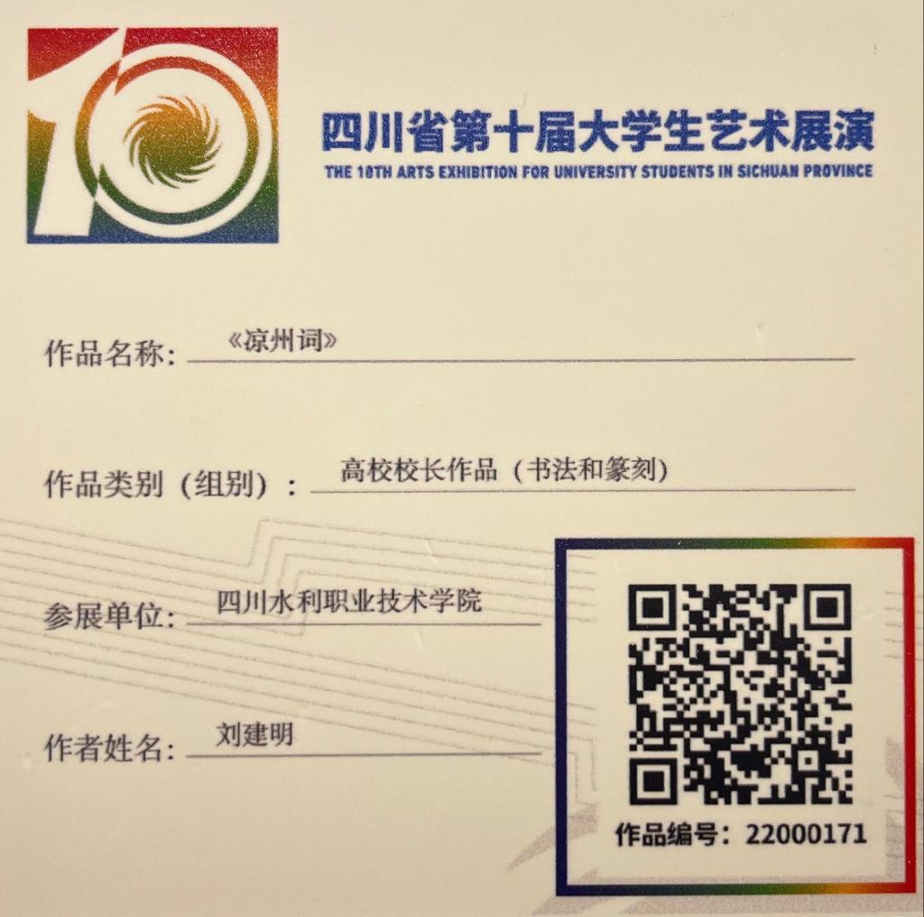 本次活动设置高校校长书法作品展,我校校长刘建明的书法作品《凉州词》亮相活动现场。