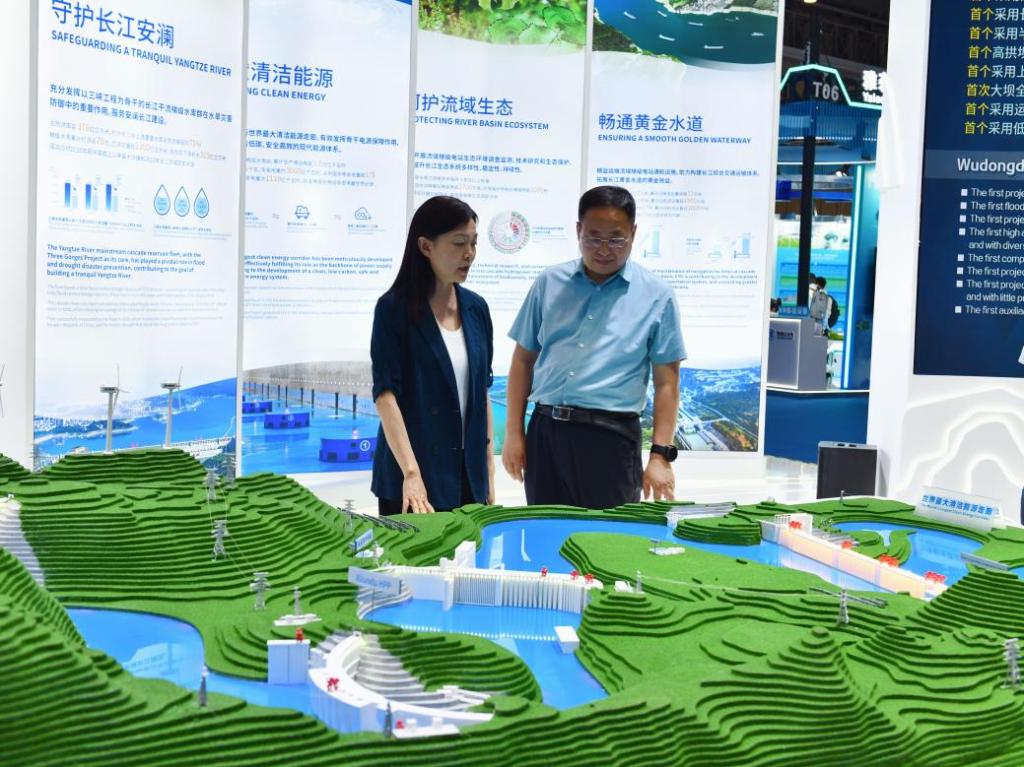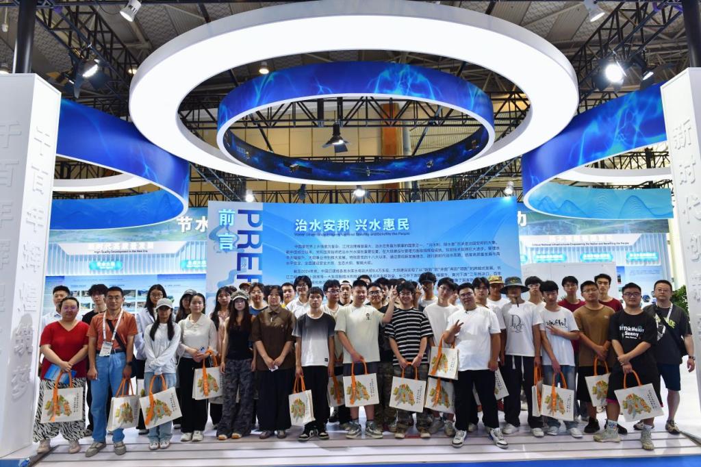 在四川水利展区,陆健书记要求师生:“建议将展览内容转化为教学科研资源,要立足国际视野,深化产教融合,培养服务‘千河之省’的高素质水利人才。”