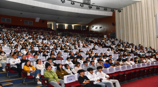 4月10日,中国首部思政课教师题材的轻喜剧院线电影故事片《我要当老师》在我校大礼堂点映。从下午1点开始,在马克思主义协会“引领员”志愿者的引导下,观影人员陆续进入会场。点映活动在下午2点正式拉开帷幕,学校党委书记陆健、校长刘建明、学校领导班子成员、师生代表共计1000余人观看了影片。