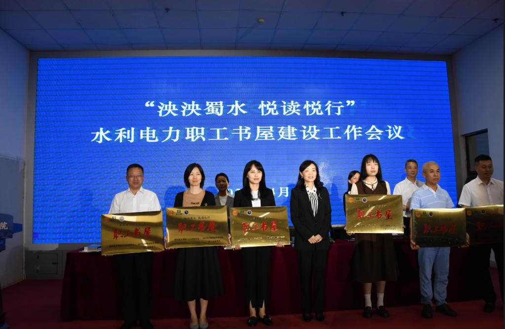 根据会议安排,学校图书馆馆长谢祥林现场宣读了《职工书屋(架)建设实施方案》,副馆长王圣戎在经验交流中详细介绍了学校“双高”背景下的书香校园建设成果:2024全年学校图书馆开展283场阅读推广活动,参与人数达 31267 人次。目前,学校图书馆拥有藏书 81.9万余册,覆盖水利、电力、信息技术等多个学科领域。荣获“四川省全民阅读基地”称号;入选“四川省全民阅读三个一百示范工程”;在全国高职高专图书馆中影响力排位第98名,影响力全省第二。丰富的馆藏文献资源、富有特色的文化活动与阅读推广工作,与全省水利系统职工书屋建设目标高度一致,为营造职工书屋浓厚的文化氛围积累了宝贵经验。会议现场,还为农水中心、河湖中心及水利学院等24个书屋、11个书架建设单位授牌,按照计划这些书屋(书架)将力争在本年度内建成投入使用。