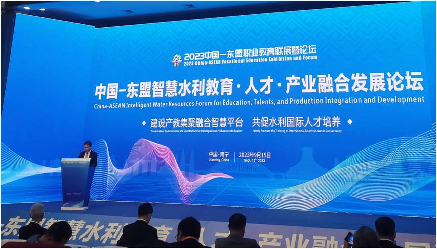 9月15日,副校长李红卫、谢婧一行赴广西南宁参加“中国—东盟智慧水利教育·人才·产业融合发展论坛”。本届论坛在中国水利教育协会指导下,由广西壮族自治区教育厅、水利厅主办。中国水利教育协会副会长兼秘书长王韶华以及广西壮族自治区教育厅、水利厅相关领导出席论坛并讲话。出席论坛的还有柬埔寨、印度尼西亚、老挝、泰国、新加坡等国水利院校负责人,以及来自全国水利类高等学校、职业院校、行业企业的嘉宾140余人。