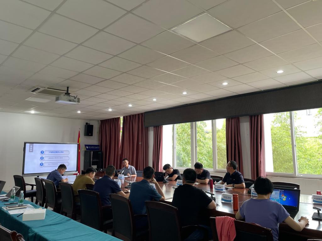 会上,刘明锦分别介绍虚拟仿真实训中心仿真环境及硬件13套配套资源,仿真中心建设,多功能模块集合的VR平台,VR资源的内容;汇报了一卡通建设16项建设内容,项目暑假建设期间与各部门分工协调工作;讲解了云计算中心桌面架构、建设价值、成效亮点。