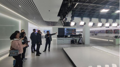 期间,调研团队在四川旅投相关负责人带领下参观了成都索贝数码科技股份有限公司。深入了解了其核心AI智慧传媒、虚拟演播室、影像直播(LIVE)、XR沉浸式虚拟现实数字呈现技术等高新技术,为数媒专业实训室升级改造提供了新思路。