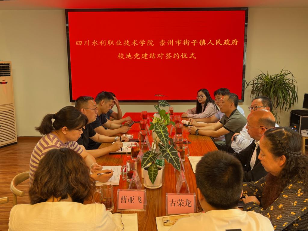 2024年6月4日上午,四川水利职业技术学院与街子古镇在景区党群服务中心举行了校地合作揭牌仪式,崇州市街子镇党委书记张龙江、崇州市街子镇党委副书记/镇长候彬以及四川水利职业技术学院副校长张智涌等嘉宾参与了本次活动。
