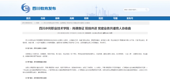四川水利职业技术学院:岗课赛证 双线并进 党建业务共谱育人协奏曲