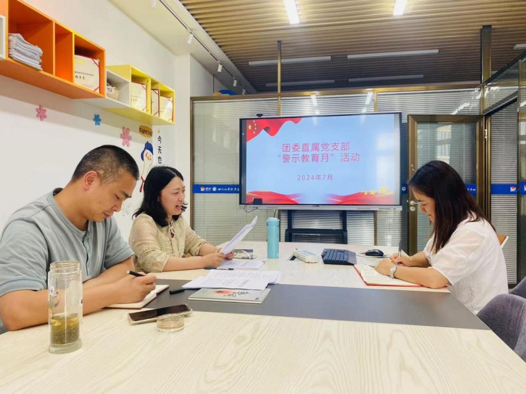 7月8日上午,团委直属党支部开展了“警示教育月”活动,团委直属党支部全体党员参加,会议由团委直属党支部书记张蕾主持。