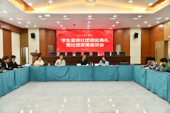 为激发学生社团积极创新、提质增效、表彰优秀,2024年10月22日,2023—2024学年学生星级社团颁奖典礼暨社团发展座谈会于行政楼C303顺利举行,校党委委员、副校长王宾出席,校团委、各社团指导老师及学生代表参加活动。
