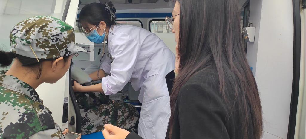 从军训第一天起,医护人员即与学生“同作息、共进退”,在操场和卫生所随时待命。面对可能出现的中暑、晕厥、皮肤过敏等不适症状,医护人员通过科学、专业的现场急救,为多位同学迅速缓解了不适,保障了训练的连续性与安全性。